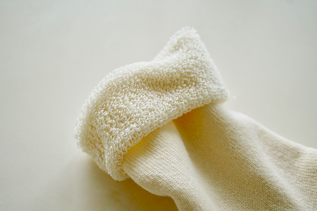 肌に触れる靴下の内側部分は、シルク50%コットン50%を配合したシルクコットンを使用しています。