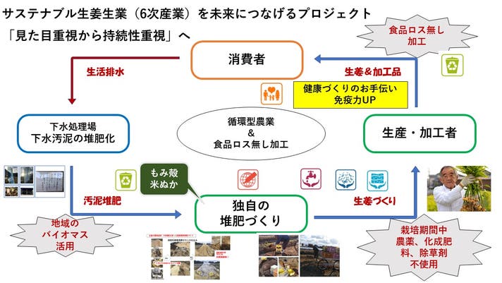 2020年には佐賀県の認定を受け、エコファーマーとして新たに就農し、循環型農業(炭素循環農業)に取り組んできました。また、私は69歳という年齢にもかかわらず、美味しい生姜加工品を作るエコファーマーサイエンティストを目指しています。長年の経験と情熱で、地域の発展と健やかな生活をサポートする食生活の実現に尽力していきたいと思います。