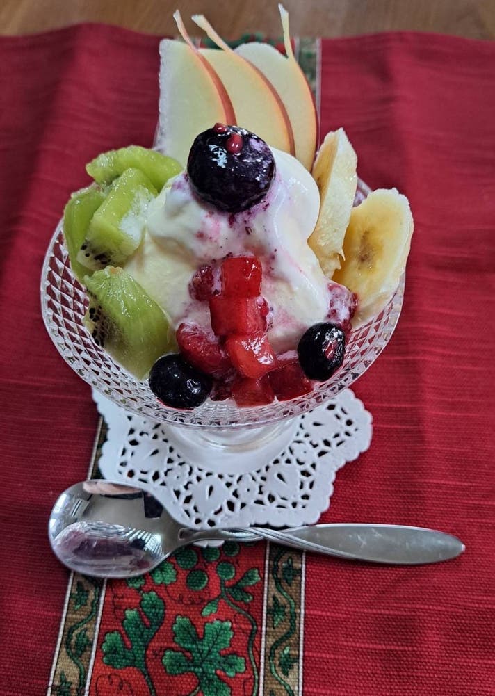 概要:ヨーグルトにシロップとフルーツをトッピングした、彩どり鮮やかなデザート。
