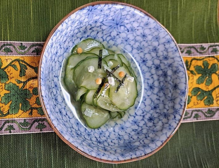 材料(100g分):大根又はキュウリ(薄切り)100g、シロップ大さじ1、米酢大さじ1、塩小さじ1/4。