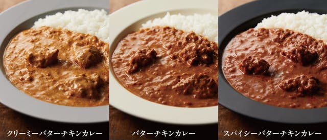 辛さの違いはもちろんですが、それぞれの辛さにあった味わいを追求した3種です。濃厚でクリーミーな甘口バターチキンカレー、絶妙なバランスが生み出す本格的な定番バターチキンカレー、そしてトマトの酸味で辛さを引き立てた辛口バターチキンカレーと、それぞれ全くイメージの異なる味わいです。ぜひ、3種類を食べ比べてみてください!