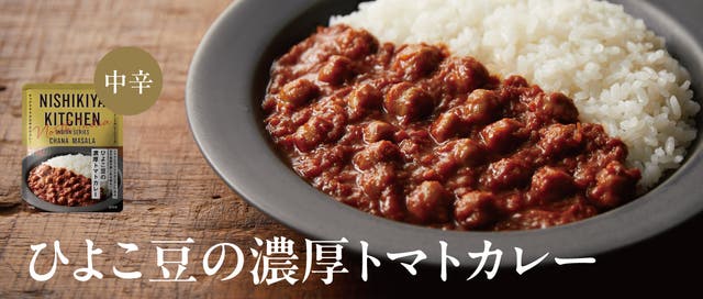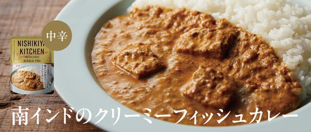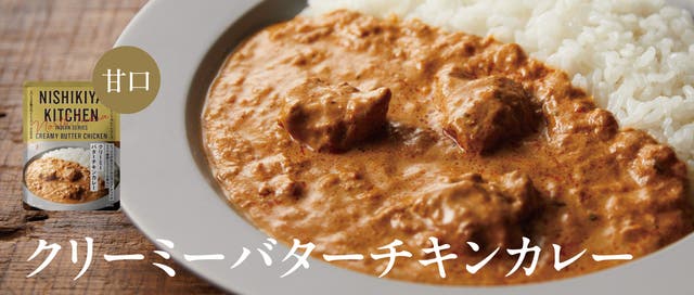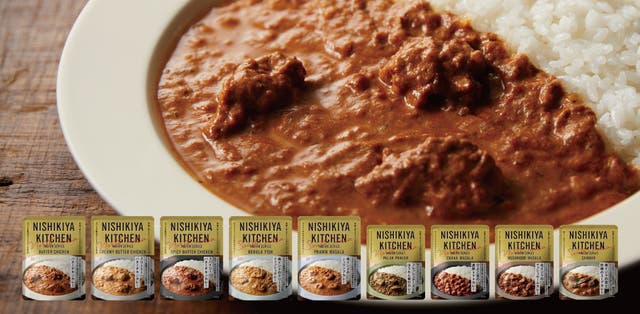そんなにしき食品が展開する自社ブランドがこの「NISHIKIYA KITCHEN」です。NISHIKIYA KITCHENでは"世界の料理を「カンタン」に。" をコンセプトに、レトルトカレー約60種類をはじめスープやパスタソースなど約120種類の商品を取り揃えております。