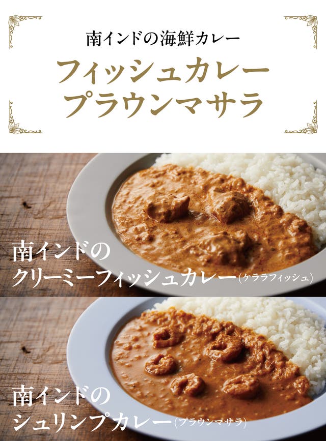 南インドでは、「南インドのシュリンプカレー(プラウンマサラ)」に着目しました。海に面した南インドでは、日本ではあまり馴染みのないお魚を使ったフィッシュカレーをはじめ、海鮮を使ったカレーが多く見受けられます。プラウンマサラも南インドで親しまれる海鮮カレーの一つです。