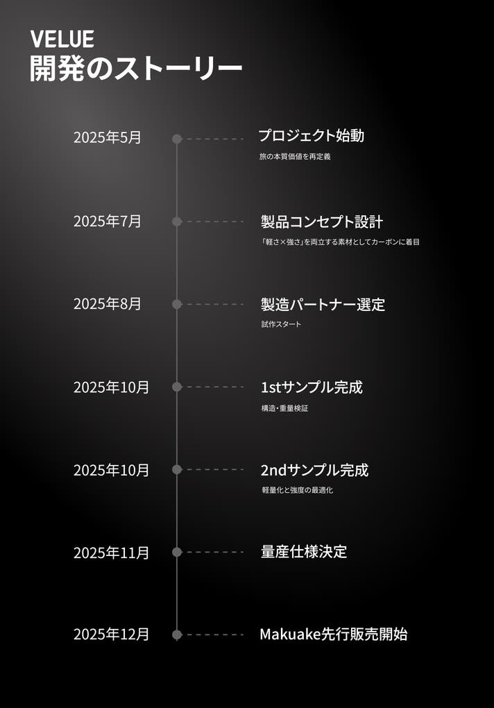 「Makuake(マクアケ)」は、実行者の想いを応援購入によって実現するアタラシイものやサービスのプラットフォームです。このページは、 プロダクトカテゴリの 「軽くて強いカーボンファイバー採用。長く愛せる一生モノのスーツケース|VELUE」プロジェクト詳細ページです。