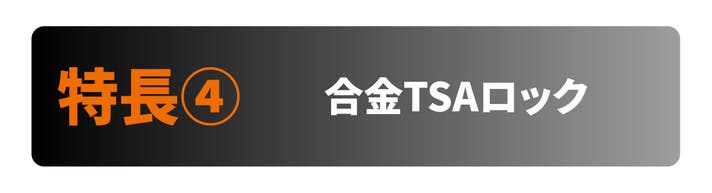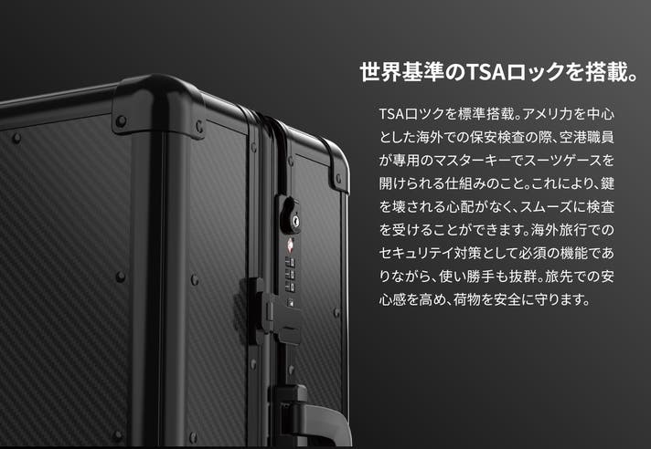 本製品は、海外渡航や預け荷物でも心配なし、TSAロックを採用しています。
