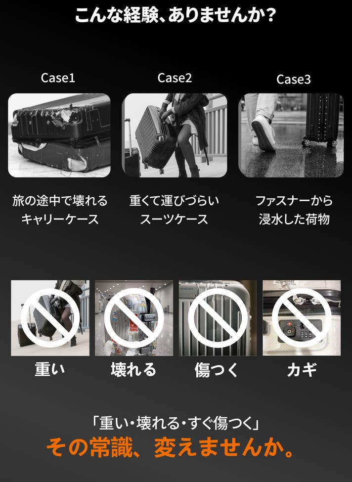 「旅の不安を消し、持つことが誇らしくなるスーツケース」です。