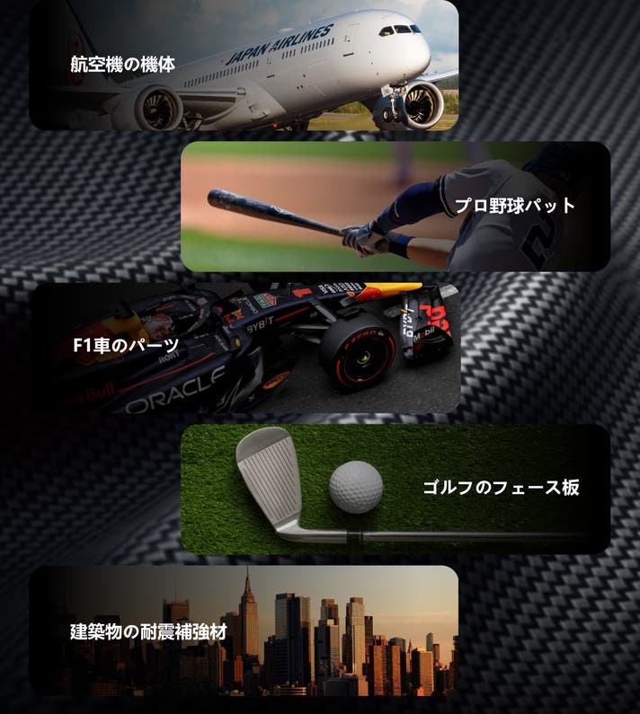 カーボンファイバーは、航空機やレーシングカー、宇宙分野でも使われる素材です。