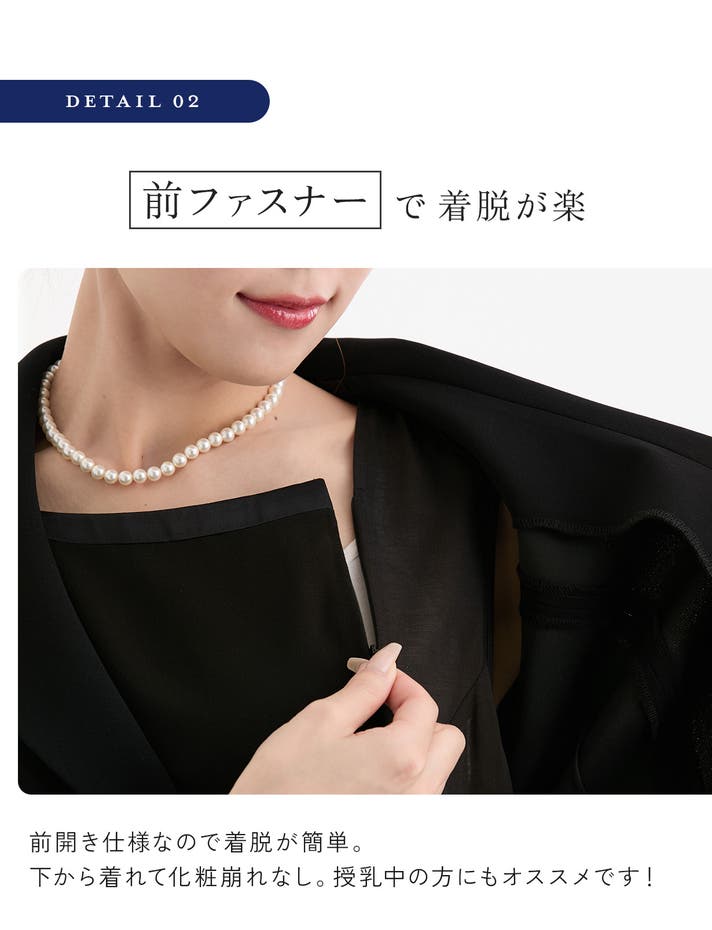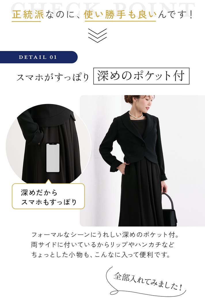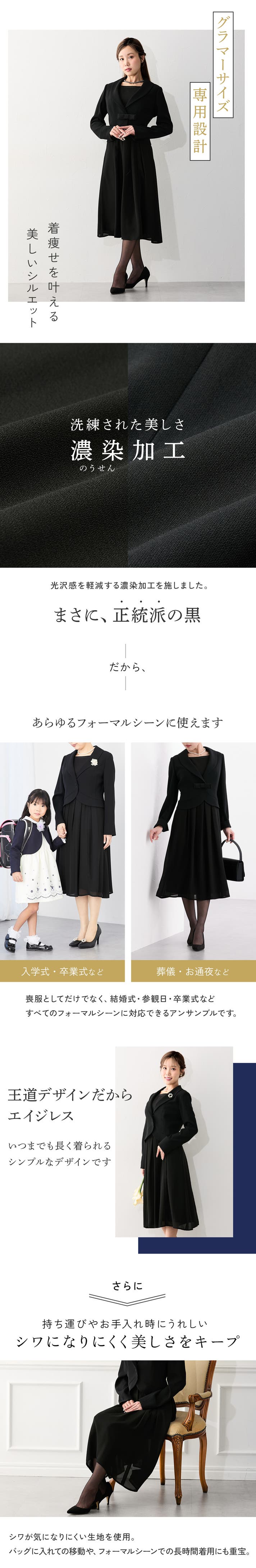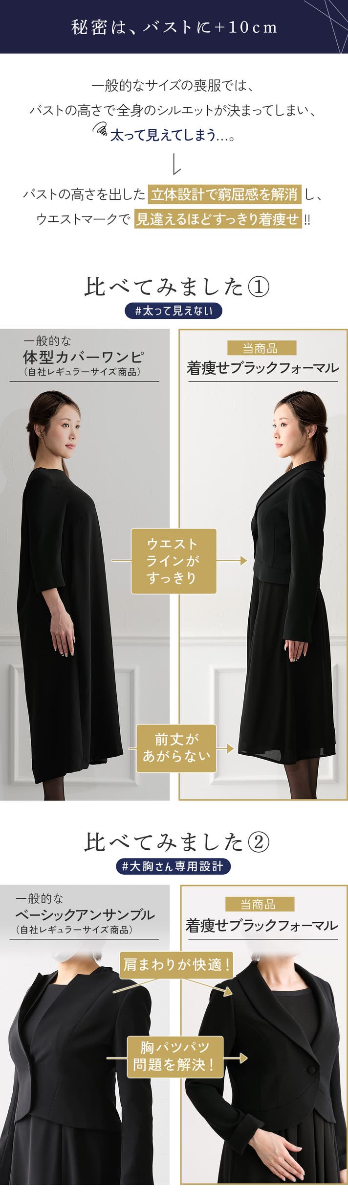 - 大きい胸がきちんと収まり、着痩せと美しいシルエットが叶うブラックフォーマルワンピース。