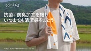 - 一枚あると頼もしい。椿油配合+UVカット効果で、夏に最適な肌想いタオル!