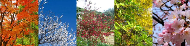 早春から春に咲く「春咲き花木」と、初夏から秋に咲く「夏咲き花木」の生育の様子を解説しています。 写真と絵を使って、春夏秋冬の様子を一緒に確認してみましょう。