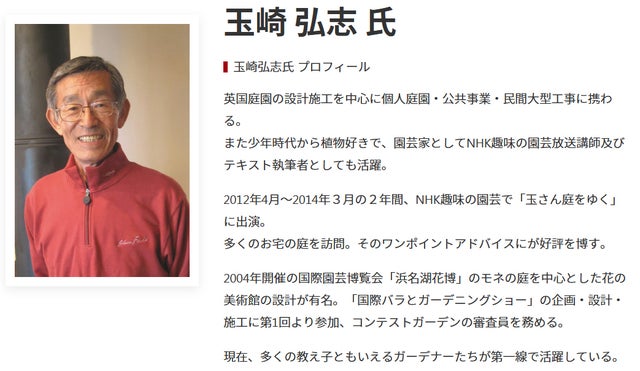 *ガーデニングの伝道師として多くの人に親しまれ、トップガーデナーとして多くの素晴らしい庭をつくり後進を育ててきた玉崎弘志先生が2020年7月19日にお亡くなりになりました。心より御冥福をお祈りいたします。
