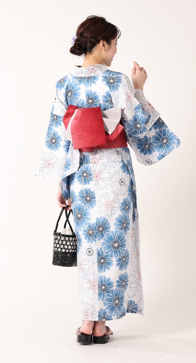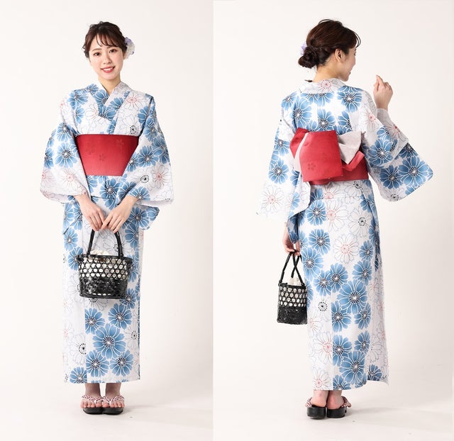 浴衣を着たことがない方、浴衣の着付け苦手な方でも簡単に着られて帯も巻くだけで結ぶ必要がありません。