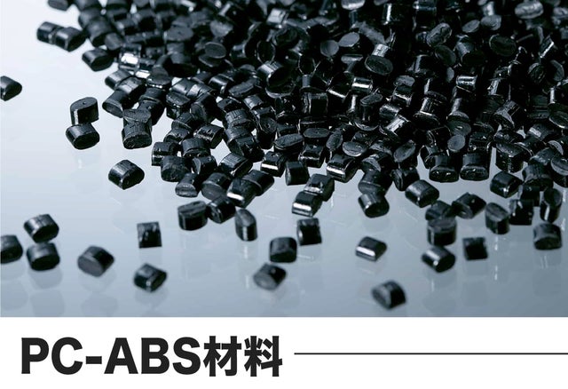 PC-ABSは、ポリカーボネート(PC)とアクリロニトリルブタジエンスチレン(ABS)を混合した材料です。高い靭性と耐熱性を持ち、曲げ強度にも優れているためスーツケースや3D製品、自動車カバーなどと広く使われている素材です。