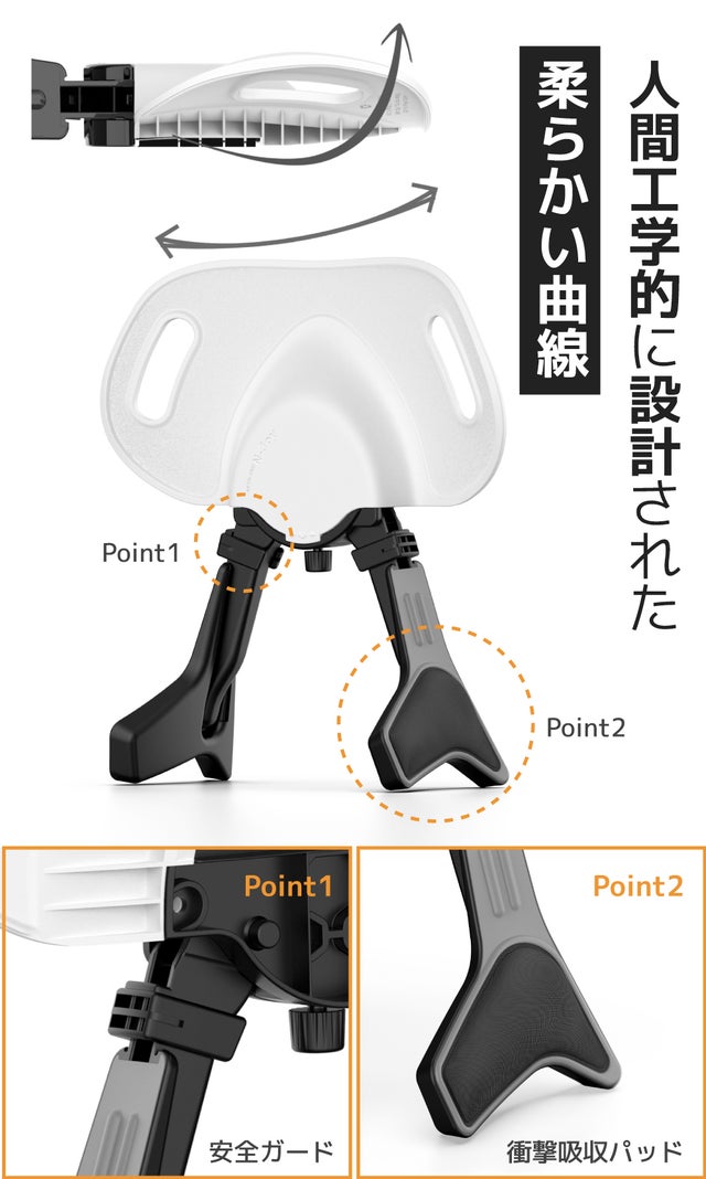 エンジョイアクティブは身体の曲線に合わせて お尻を包む曲線と、使用時に快適に運動できるように人間工学を基に設計されています。
