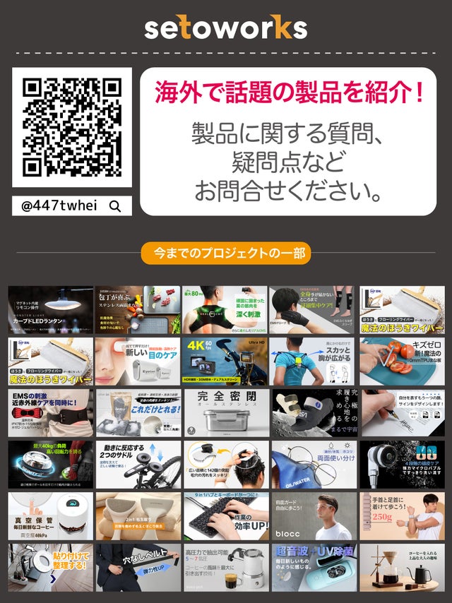 ※使用感などに関しては、感じ方に個人差が予想される商品でございます。そのため、使用感などに関する返品・返金はお受けいたしかねます。 ※初期不良以外に関する返品・返金はお受けいたしかねます。 ※開発中の製品のため、デザイン・カラー・素材などの仕様が一部変更になる可能性がございます。 ※モニター環境によって、画像の色が実物と異なって見えることがございます。 ※応援購入の数が想定を上回った場合、製造工程上の都合などにより出荷時期が遅れる場合がございます。 ※想定を上回る皆様から応援購入をいただき、量産体制をさらに充実させることができた場合、一般販売価格が予定価格を下回る可能性がございます。 ※リターンの配送が完了するまでセトワークスはN-JOYの日本における独占販売権を有する正規代理店です。並行輸入品が発生する可能性がございますが、並行輸入品には正規代理店による製品サポートを受けることができません。 また、正規代理店を通じて購入することで、日本国内での流通に必要な各種認証の取得やの関税の適切な処理が担保されます。 ※一部国内に類似商品が出回っている可能性がございます。弊社では他社の類似品に関してもお問い合わせには対応できませんのでご了承ください。 ※本文中に記載させていただいたスケジュールはあくまでプロジェクト公開時点の予定です。応援購入の性質上、配送遅延の恐れがございます。 ※原則として配送遅延に伴る応援購入のキャンセルはできませんが、リターン配送予定月から6か月を超えた場合には希望者に限りキャンセルにて対応させていただきます。
