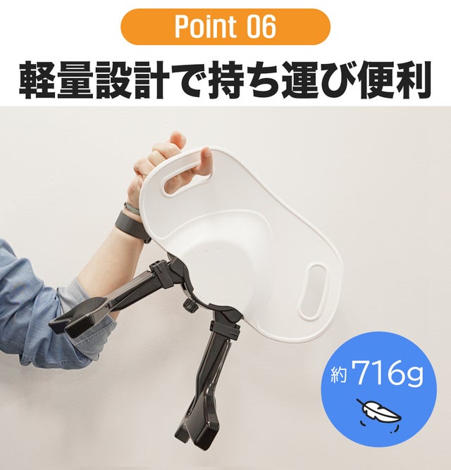 指一本で持てる重さ約716gの軽量設計で、どこでも気軽に持ち運べます。
