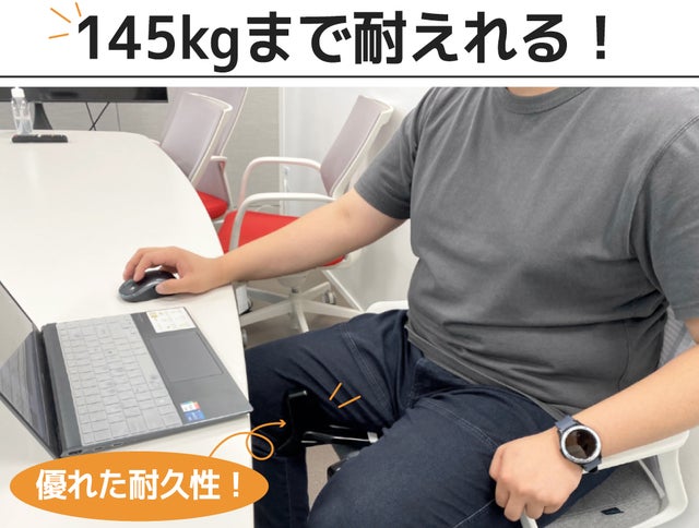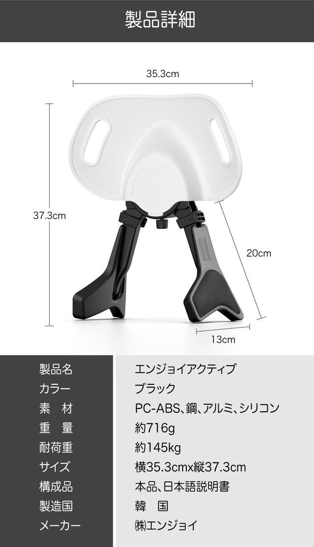 エンジョイアクティブはPC-ABS素材で製作されており、衝撃に強く優れた耐久性を誇ります。耐荷重は最大145㎏まで耐えられます。