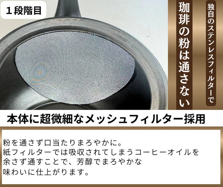 - 【誰でも簡単に】常滑焼の陶肌が雑味を抑え、角のとれた上質な味に。コーヒーオイルも余さず抽出。