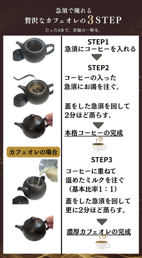 - 【濃厚カフェオレ】2段階のフィルターでコーヒーもカフェオレも美味しく淹れる本格的な珈琲急須です