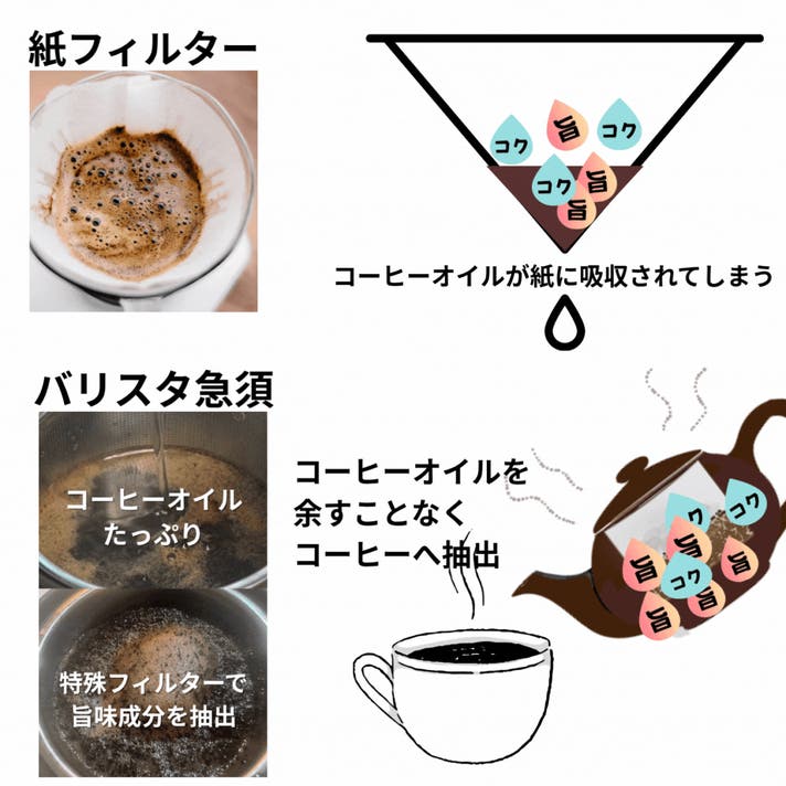 コーヒーオイル(旨味成分)を余さず抽出することで