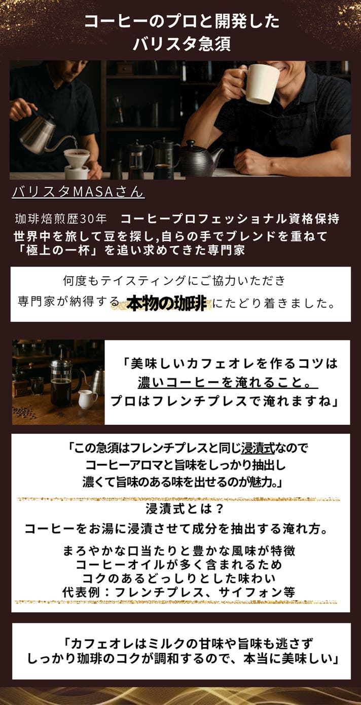 旨味とコーヒーオイルがなめらかに溶け合い、専門店さながらの贅沢な一杯に。