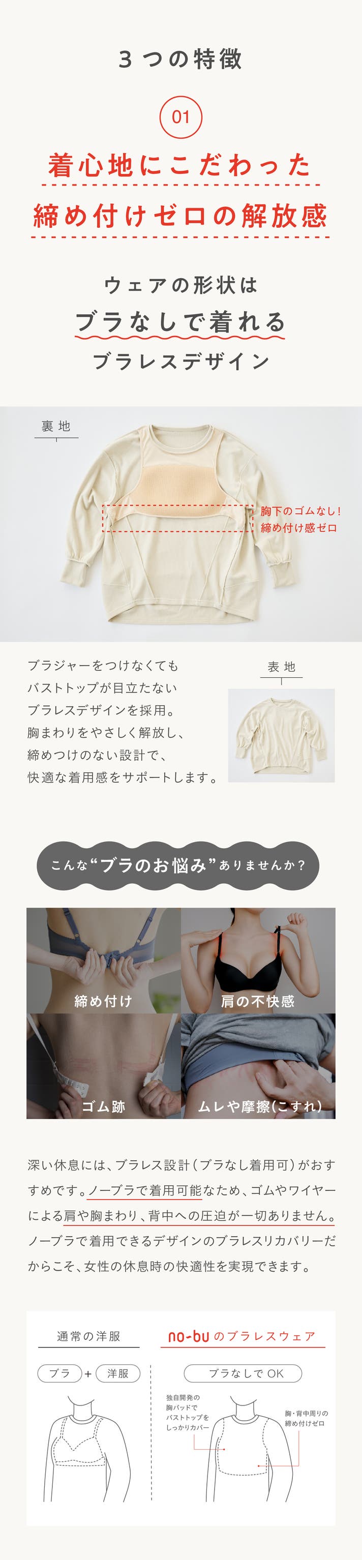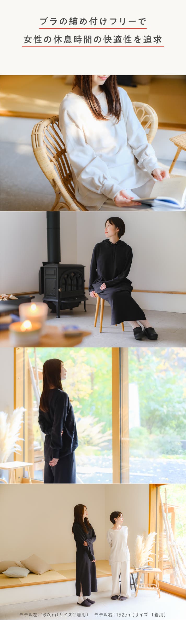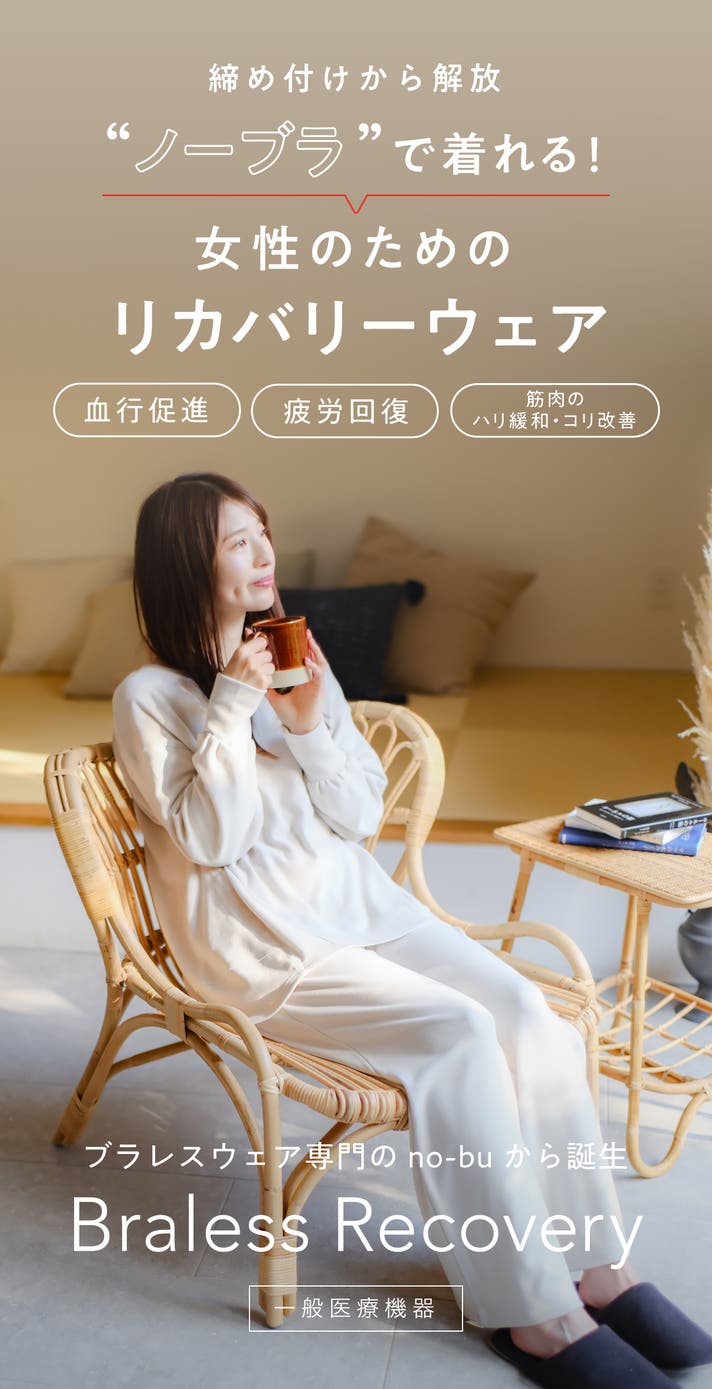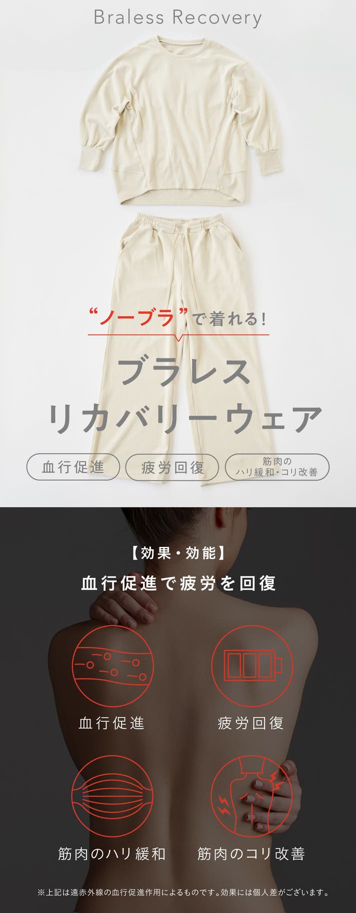 - 女性のくつろぎタイムに嬉しい、ノーブラで着用できる!リカバリーウェアが登場。