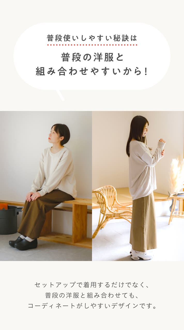 - リモートワークに最適!普段着っぽいデザインだからワンマイルウェアとしても活躍。