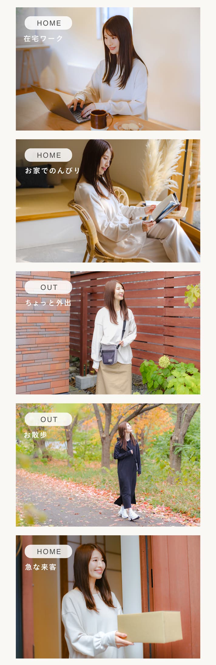 会計士という仕事柄、長時間パソコンに向かうことが多く、リモートワーク中はできるだけ楽な服を選ぶようにしています。no-buのブラレスリカバリーは、今日は詰めて仕事を進めたいという日にぴったりです。フード付きで首まわりもあたたかく、部屋着っぽすぎないデザインだから、そのままちょっとした外出もできるのが嬉しいです!出勤した日も家に着いたら、まずこれに着替えるのが日課ですね。