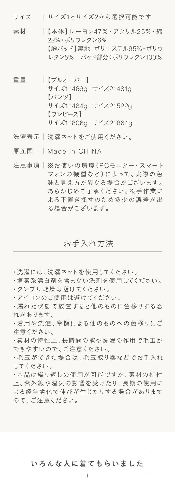 ○ 素材の特性上、長時間の摩擦や洗濯の作用で毛玉ができやすいので、ご注意ください。毛玉ができた場合は、毛玉取り器などでお手入れしてください。