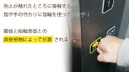 その抗菌効果を利用し、エレベーターボタンや自動販売機など、他人が触れたところに接触する指や手の代わりに指輪を使ってタッチ!