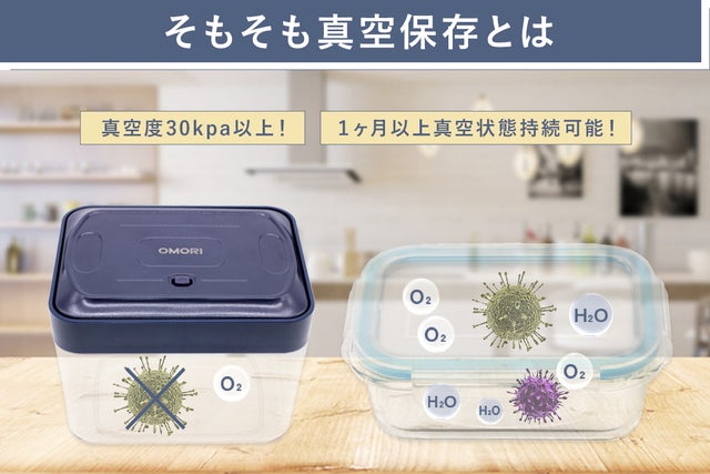 NoaBoxはこれまでの真空保存の構造、方法を根本的に見直し、より簡単により便利になるよう設計された画期的な真空保存容器です。