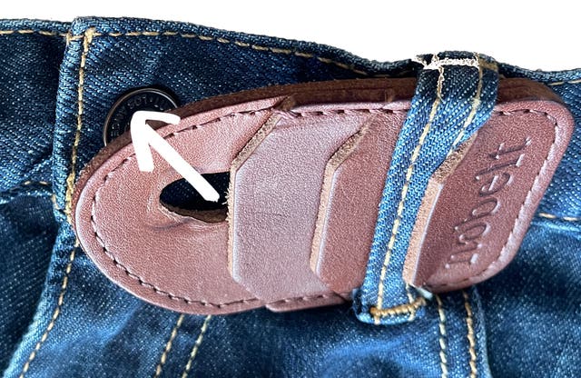 ❹ nobeltは3カ所で止めることができますので、デニムによって調節してください。