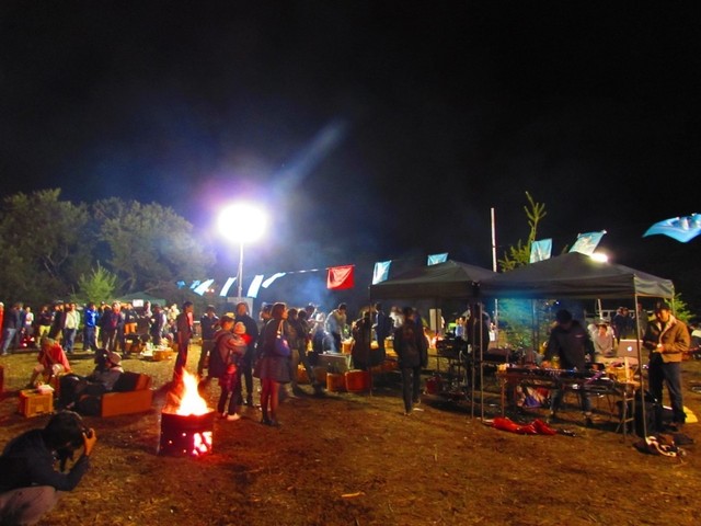 標高の1400m近いので冷える会場にたき火で暖を。