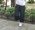 このワイドパンツの場合は緩みがあっても落ち感がきれいなデザインです。