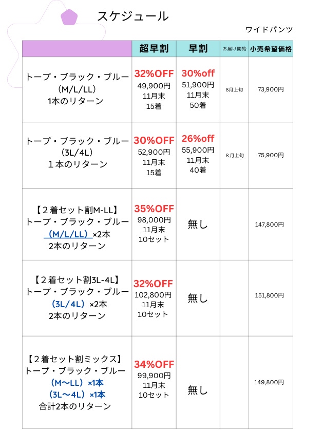 [早割]30%OFF ワイドパンツ (サイズ M L LL)