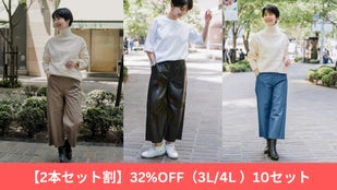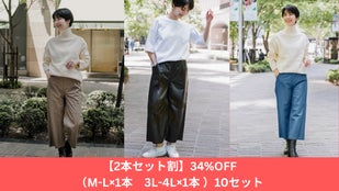[2着セット割]34%OFFレザーワイドパンツ(M-LL ×1 3L-4L×1)