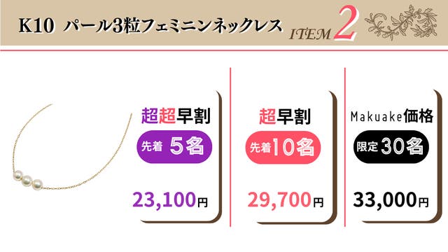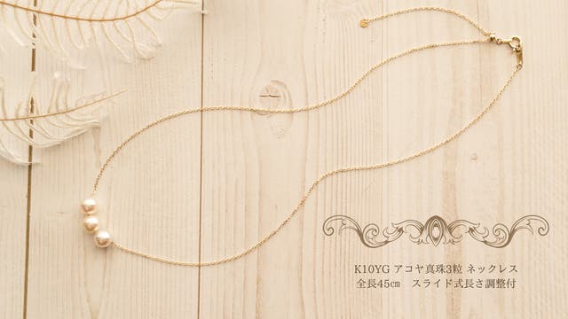 【Makuake価格】K10YGパール3粒フェミニンネックレス 24172886