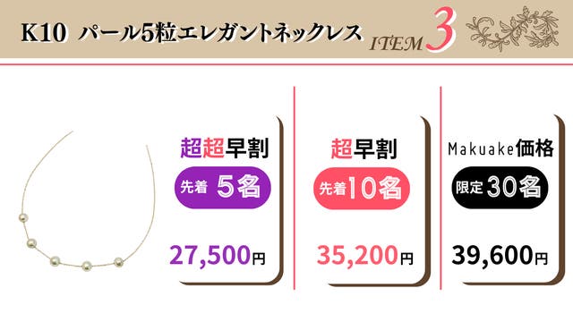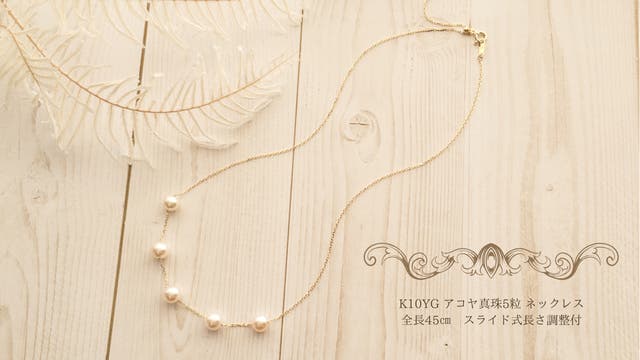 【Makuake価格】K10YGパール5粒エレガントネックレス 24172887