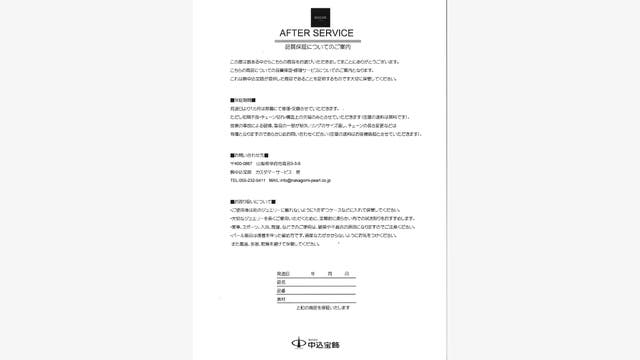 故意の事故による破損、製品の一部が紛失・リングのサイズ直し・チェーンの長さ変更などは有償となりますのであらかじめお問い合わせください。