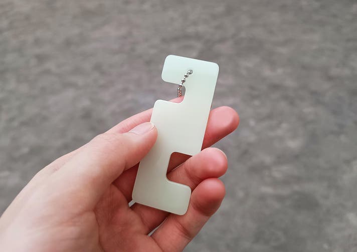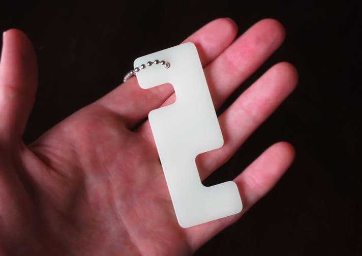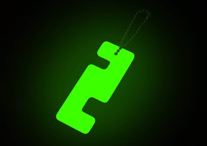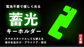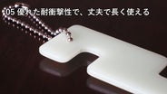 - 暗いところで光る。目印にもなり、アウトドアや防災にも役立つキーホルダー。