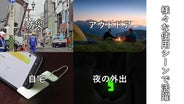 太陽光や蛍光灯から蓄光し、周囲が暗くなってきたら発光する性質を持っています。素材自体が発光するので、急に暗くなってしまう停電などの状況に使い勝手が良く、就寝時や停電時、災害時、夜のアウトドアに特に活躍します。