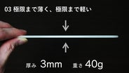 このデバイスの厚みは、わずか3mm。重さも40gしかないので、携帯しやすくなっております。一般的なスマートフォンに見られる、分厚さや重たさがありません。