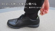 まず、正面のカーブが踵の形に沿うようにやさしくフィットするので、スッと快適に履くことができ、履くときの足の痛みも軽減します。