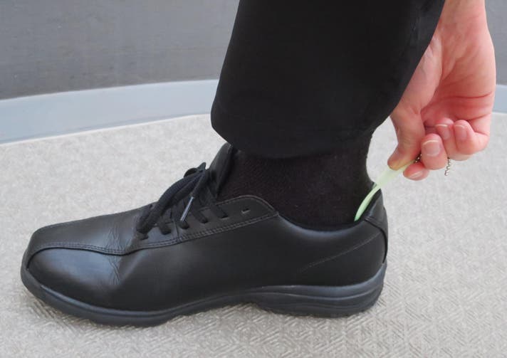 - 足にも靴にも優しいデザインをした靴べら。コンパクトなので外出先でもサッと使える。
