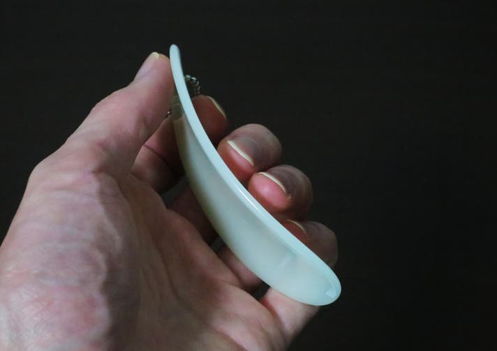そして、側面のカーブにより、履くときも脱ぐときも動作がスムーズになります。従来の靴べらは持ち手がまっすぐな形状が多い一方で、NOCTVERAは曲面そのものが手に馴染み、自然な角度で使えるように設計されています。