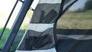 インナー側のチャックをクローズにし、フロント側のチャックをオープンにした状態です。プライベート空間を拡張し、横からの日差しを遮断します。