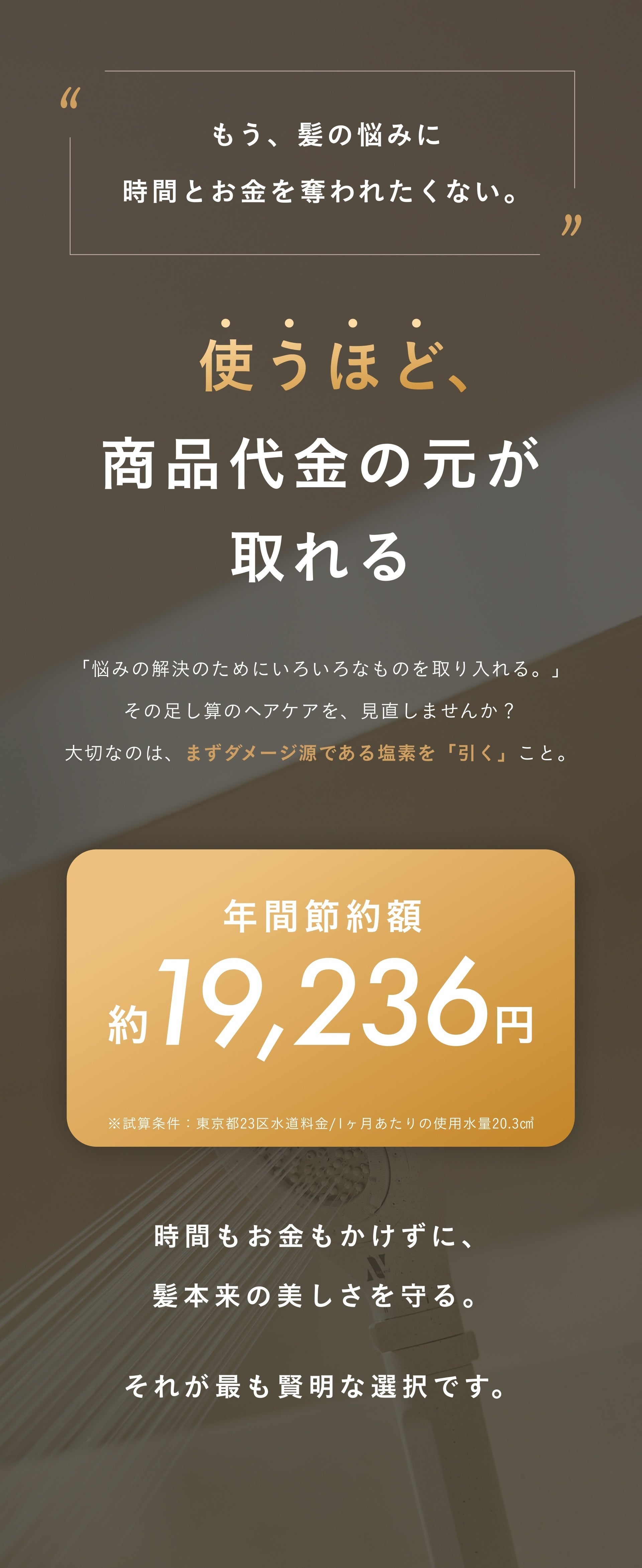- 驚きの塩素除去率99%。奥まで届くからこそ、ダメージの原因を断ち、肌と髪を守る
