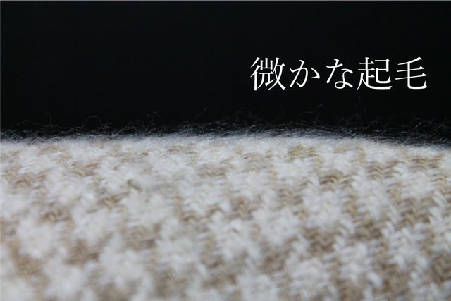 ウールの起毛と違って、「真綿(絹のわたのこと)」の繊維ですから、か細く、か弱く、けなげでしっとりとした優しいふわふわです。