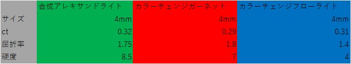 ・天然石:合成アレキサンドライト/カラーチェンジガーネット/カラーチェンジフローライト