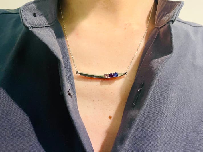 その魅力を一度に楽しめるように、3種類の宝石を1本のネックレスに並べた特別なジュエリーをつくりました。
